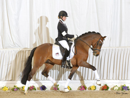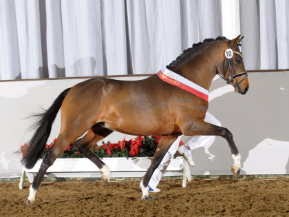Uns überzeugt an ihn sein Rahmen sowie die ausgezeichneten Grundgangarten. Darüber hinaus zeigt er sich unter dem Sattel überaus rittig. Nicht zuletzt macht ihn der hervorragende Mutterstamm als Zuchthengst besonders interessant.