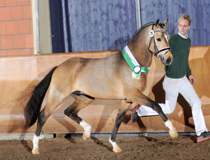 Be My Sunshine S (Golden Rock x Elite/Verb.Pr.St. Ballettänzerin von Campari Pur) wird zu dem Rheinischen Siegerhengst 2014 Movie Star gehen. Der überaus schöne und mit viel Rahmen versehene Falbhengst von FS Mr.Right – Lancer II begeisterte die Körkommission und das Publikum mit herausragenden Auftritten anlässlich seiner Körung in Wickrath. Der mit selten gesehener Bewegungsqualität ausgestattete Movie Star stammt aus einem sportlich sehr erfolgreichen Stamm und hat anlässlich der Westfälischen Hengstschau für Ponys das Publikum begeistert.