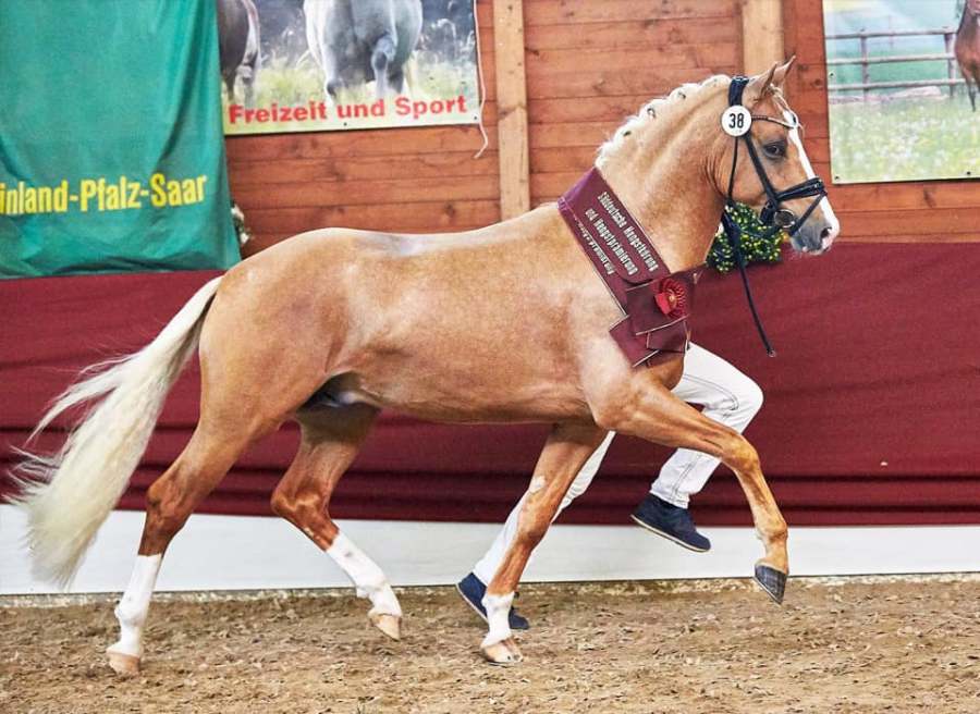 Dieser Hengst vereint das hervorragende Blut des Herzkönig NRW mit der ausgezeichneten Cascada Royale WE. 2016 war Herzkönig NRW Vizebundeschampion, 2017 und 2018 Westfalenschampion und gewann beim Bundeschampionat die Bronzemedaille bei den fünfjährigen Dressurponys.