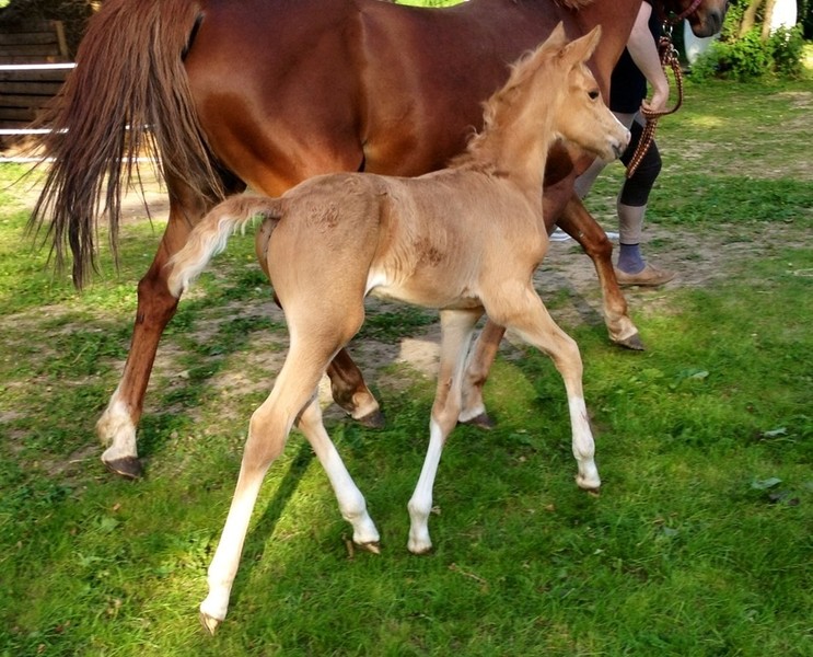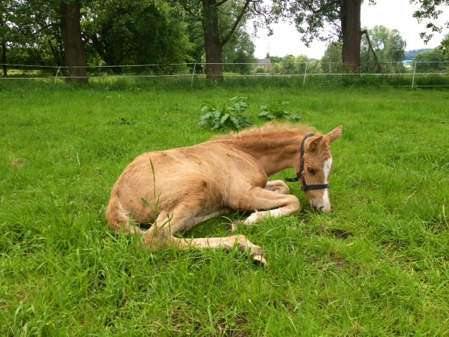 Am 21.05.2012 um 04.15 Uhr hat unsere Elitestute Ballettänzerin ein Palominostutfohlen zur Welt gebracht.