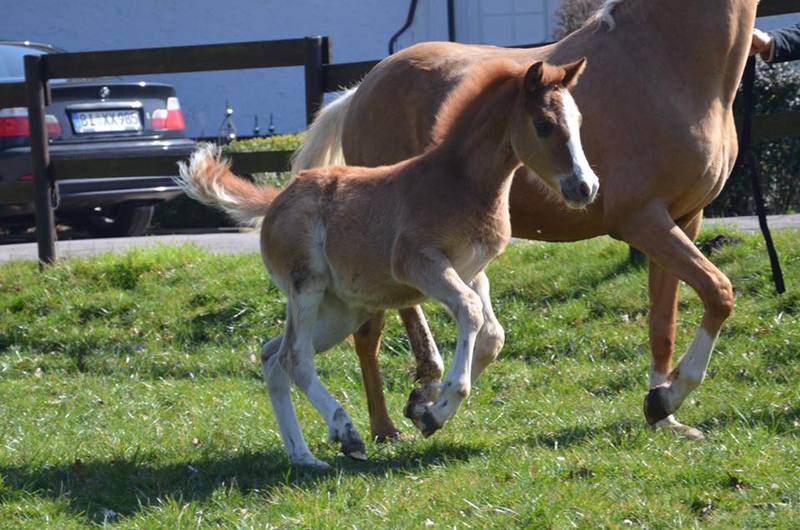 In den frühen Morgenstunden des 09.05.2017, um 04.15 Uhr, hat St.Pr.St. Daddy´s Divine ein wunderschönes braunes Hengstfohlen von A kind of Magic zur Welt gebracht. Bereits jetzt ist erkennbar, dass der kleine Hengst über viel Typ und einen lang linierten Körper verfügt.