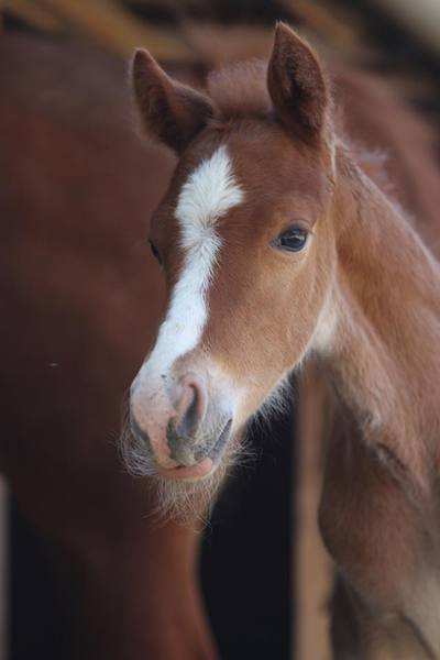 Der Fuchshengst hat den Westfälischen Prämienhengst A New Star zum Vater und wurde von Ramona auf den Namen Alaba getauft. Bereits nach der Geburt gefiel der Kleine mit seiner herrlichen Zeichnung und seinem wunderschönen Gesicht!