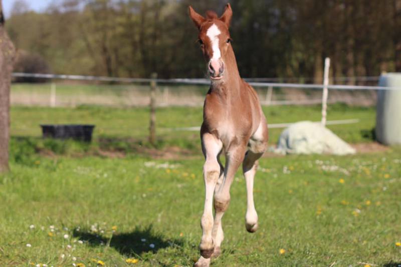 Die am 30.01.2016 geborene Be My Star von Movie Star a.d. St.Pr.St. Be My Sunshine hat sich in den vergangenen Wochen super entwickelt und wird immer schöner. Auch in Bezug auf das vorhandene Bewegungspotentzial scheint sie etwas ganz besonderes zu sein. Sie ist einfach ein rundum gelungenes Fohlen, welches ganz viel Freude bereitet.