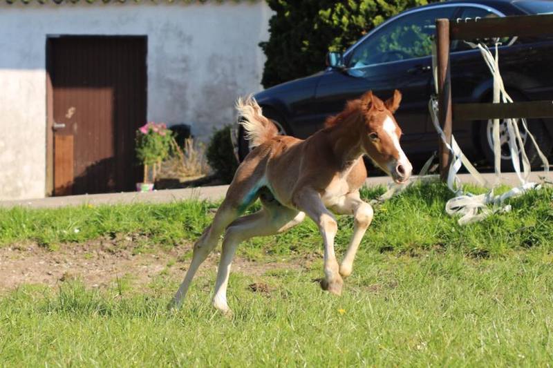 Seine Besitzerin Fabienne Friedli schickte nun ein Foto von ihm, welches wir gern veröffentlichen. Noch in der Entwicklung stehend, lässt sich schon jetzt erahnen, dass er bald ein wunderschönes Reitpony sein wird.
