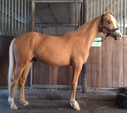 Der inzwischen zweijährige Palominohengst von Mac Creamy a.d. Verb.Pr./Elitestute Balettänzerin wurde bereits im Fohlenalter in die Schweiz verkauft.