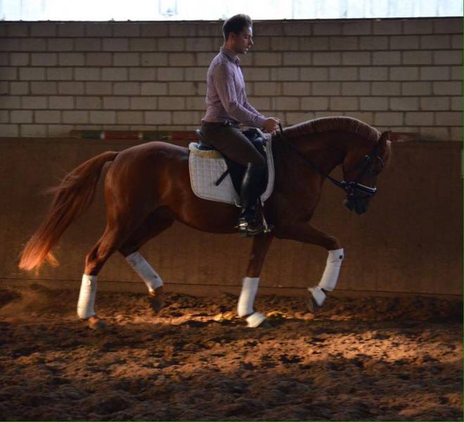 Der dreijährige Gattuso ist inzwischen sicher angeritten und zeigt unter dem Sattel seine besondere Qualität. Immer rittig und motiviert, kann er immer besser mit seiner überaus großzügigen Übersetzung umgehen und vermittelt dem Reiter ein hervorragendes Reitgefühl.