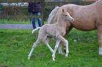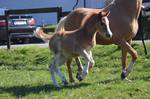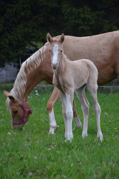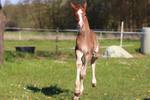 Der wunderschöne, bunte Palominohengst vom Bundeschampionatsfinalisten Herzkönig (Helios B - FS Don´t Worry) ist ungemein fit und aufgeweckt, so dass er noch am selben Tag den ersten Ausflug mit seiner Mutter auf die Weide unternehmen konnte.