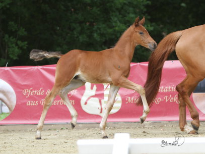 Bei diesem Hengstfohlen handelt es sich um einen Hengstanwärter der Spitzenklasse. Super liniert, typschön und darüber hinaus mit einem ganz besonderem Bewegungsablauf versehen.