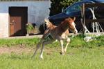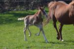 Am zweiten Lebenstag konnte der kleine Asamoah S von A kind of Magic a.d. St.Pr.St. Daddy´s Divine (FS Don´t Worry - Dancing Fox B) das tolle Wetter auf der Weide genießen. Er hatte sichtlich Spaß und übte bereits fleißig alle drei Grundgangarten.
