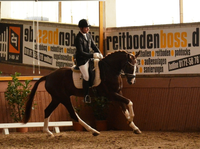 Inzwischen vierfährig, hat Forlan Siege und Platzierungen in Reitpferde- und Dressurpferdeprüfungen verbucht. Mit seiner Entwicklung sind wir sehr zufrieden!